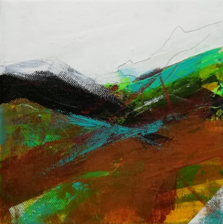 Onwards and Upwards #1, acrylic and mixed media on canvas, framed size 20 x 20cm, £120