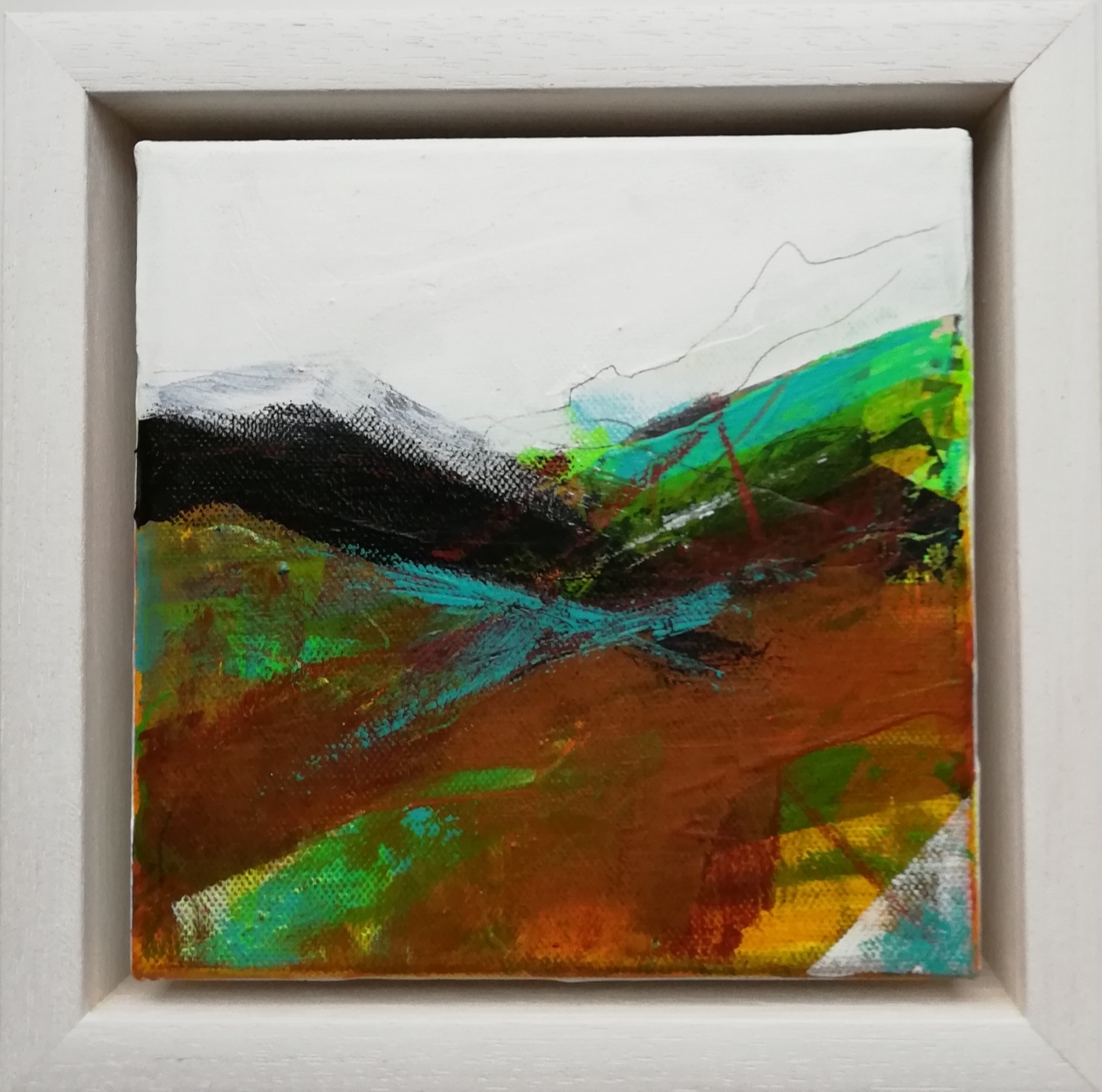 Onwards and Upwards #1, acrylic and mixed media on canvas, framed size 20 x 20cm, £120